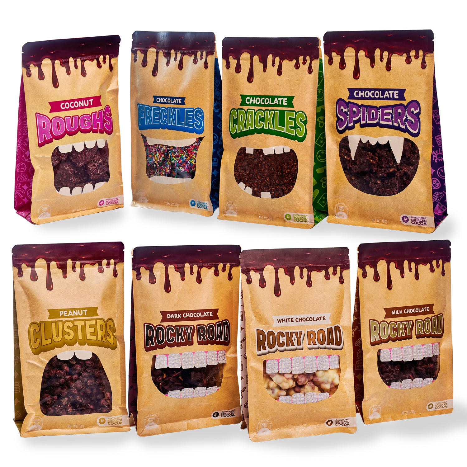Choc’d Full brings back iconic Aussie classics, like Crackles, Spiders, and Rocky Road, but all grown up! Crafted in small batches with responsibly sourced ingredients and wrapped in biodegradable packaging, our chocolate is officially good for the planet but famously bad for your self-control.